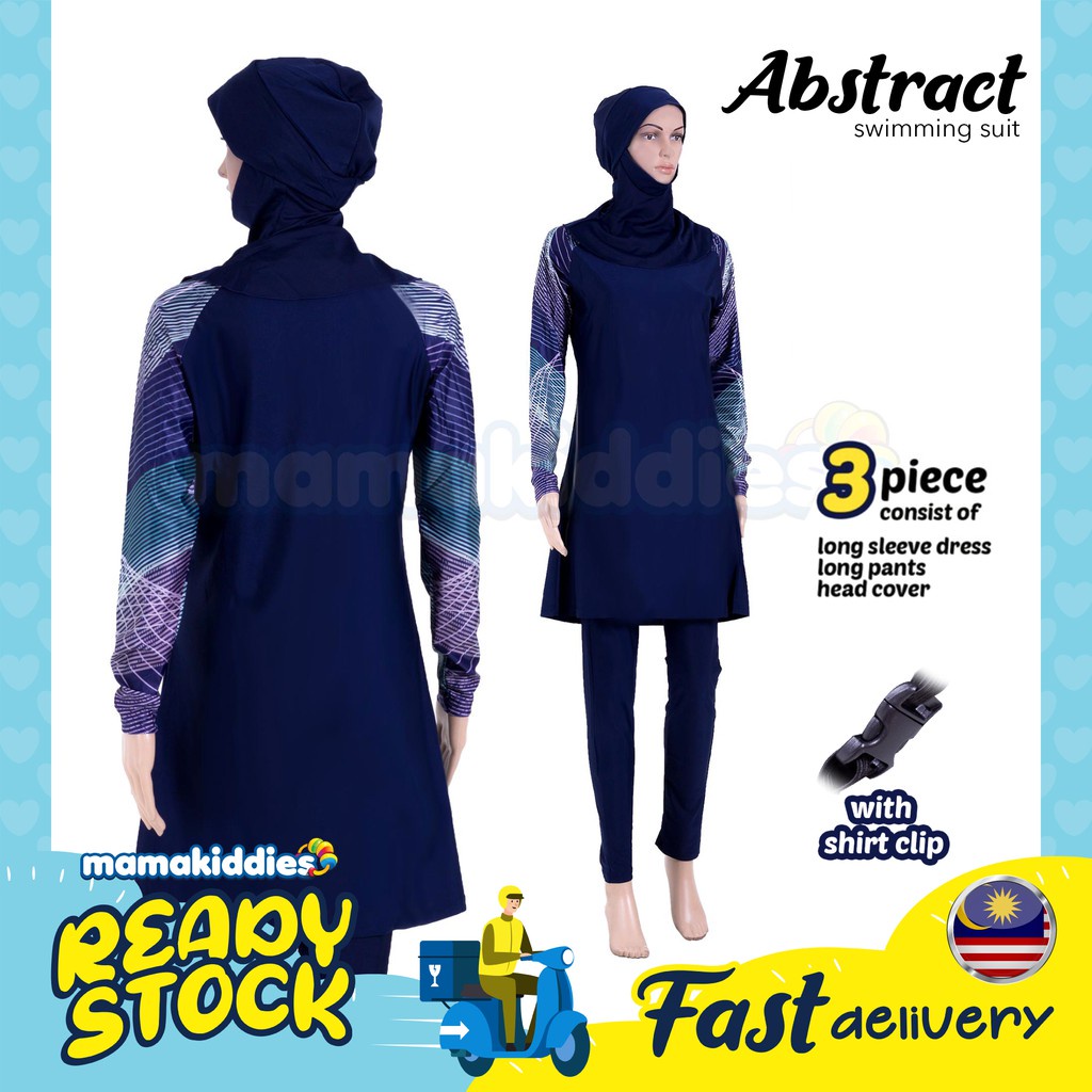 Ready Stock Women Muslimah Swimming Suit Swimwear Baju Renang Abstract Design Shopee Malaysia